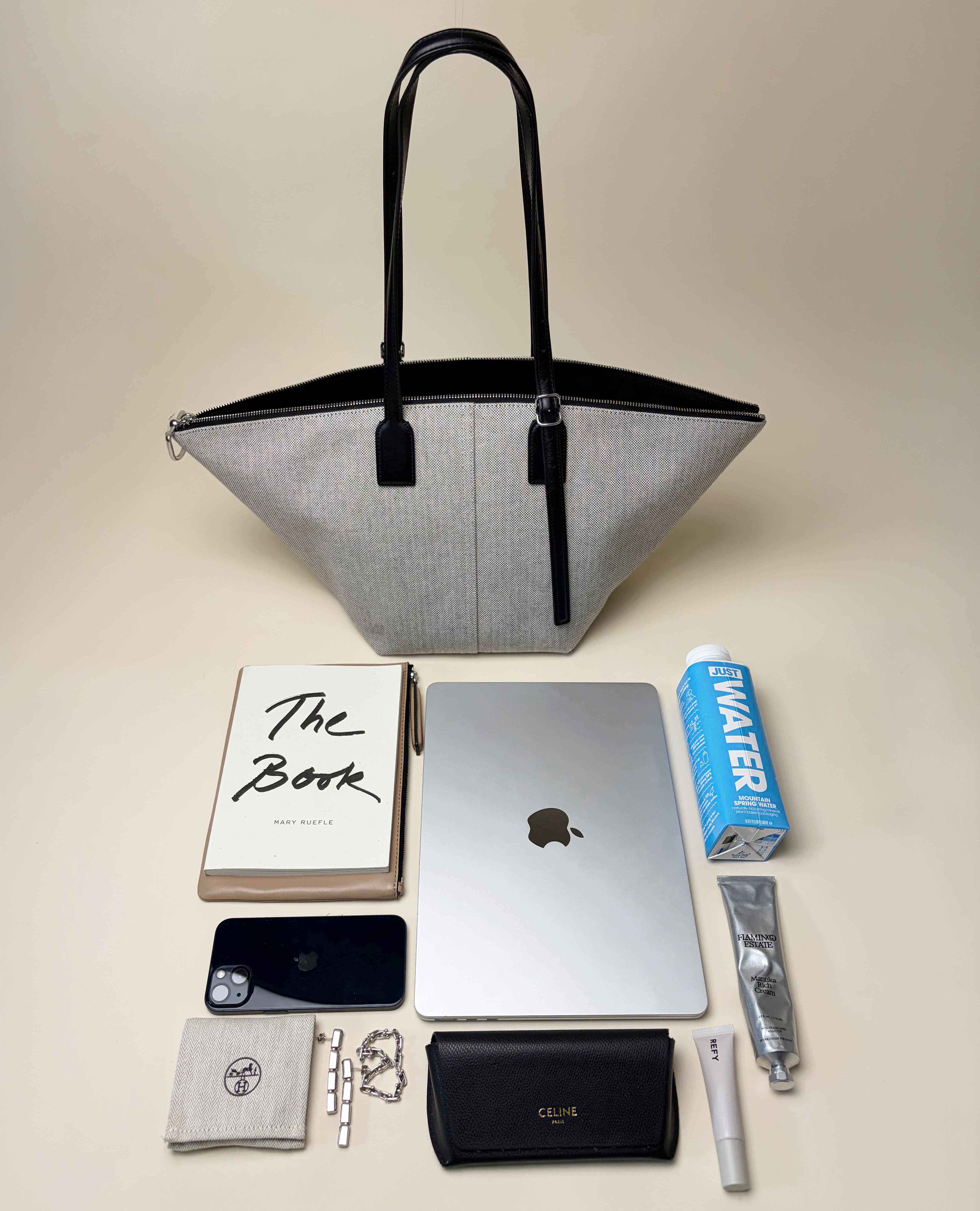 Ideal daily carry: 13” laptop, water bottle, notebook, makeup pouch.